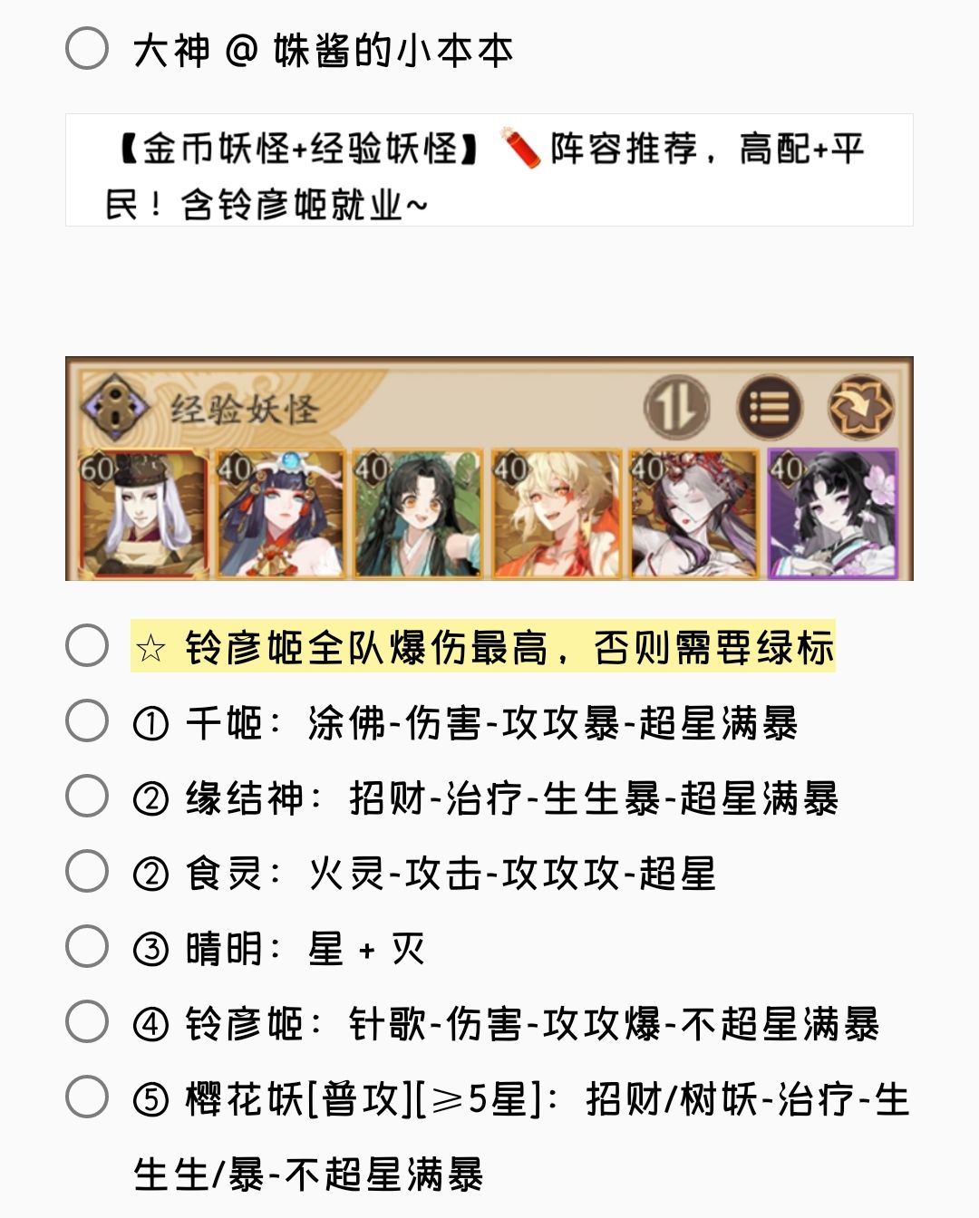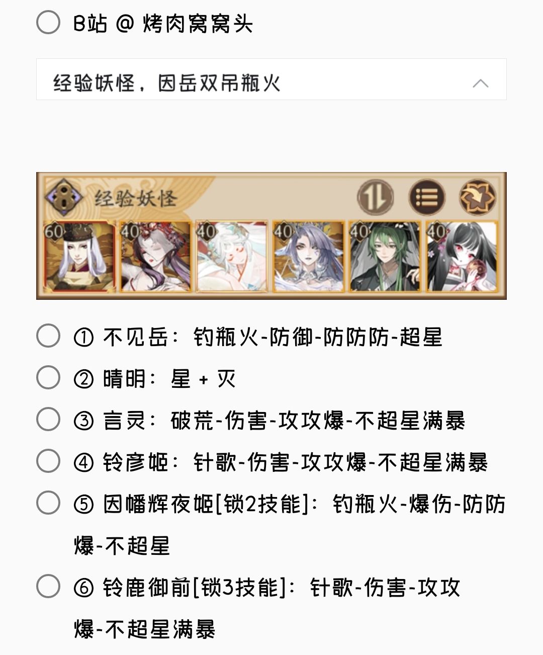 2. 若无特殊文字说明,阵容式神均需六星 + 满技能[151→至少满二技能,以此类推]