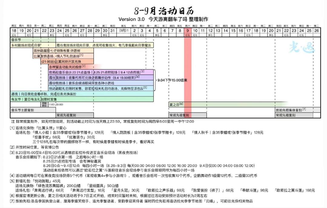 《光遇》9.9日常丨夏之日代币丨季蜡大蜡落石点丨每日任务