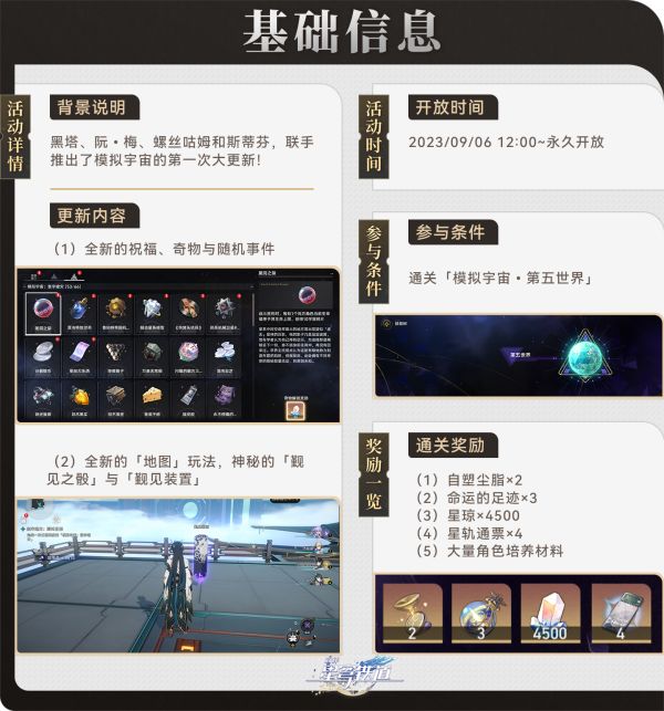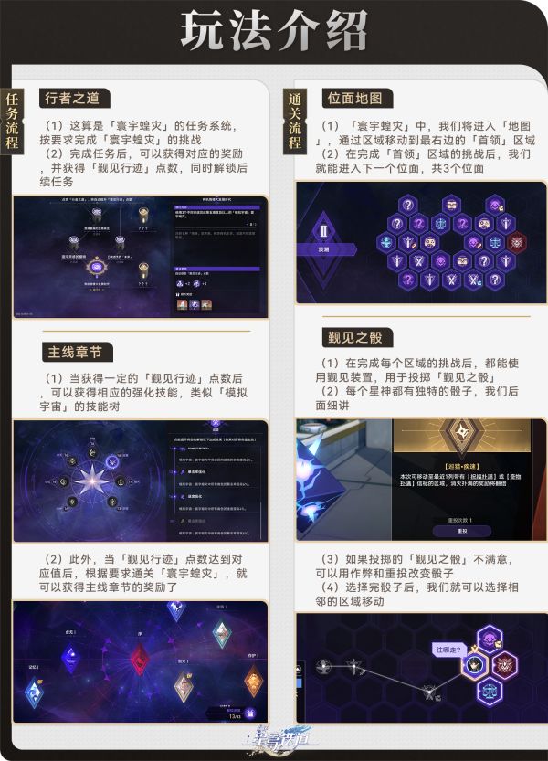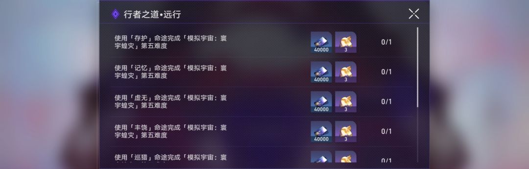 (2)模拟宇宙的通关流程(玩法介绍),「寰宇蝗灾」只有首通奖励,大家按「行者之道」要求,通关「寰宇蝗灾」推进任务即可