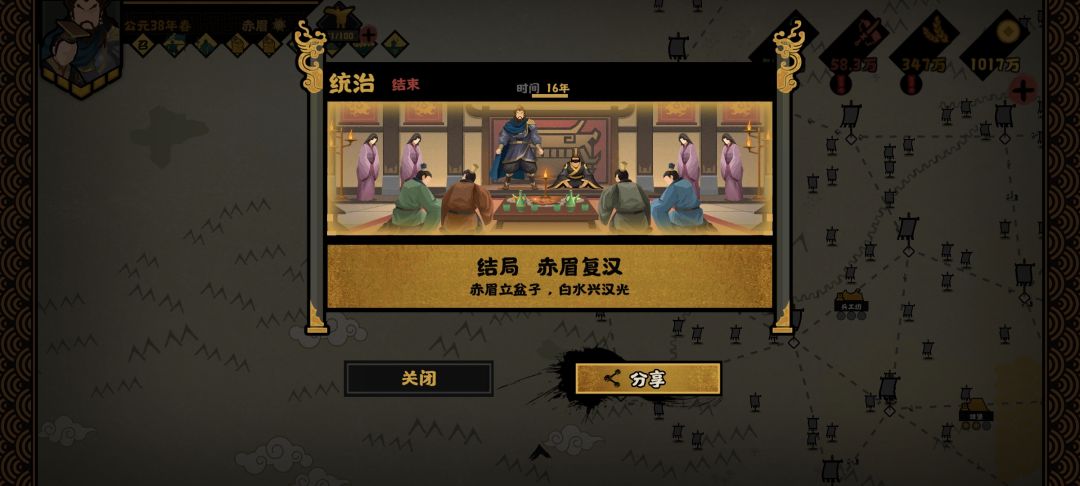 赤眉一局,赤眉军应该是所有义军里边最强的吧,开局战力高,点一点军事科技就三百多了,轻松灭掉周边的势力。