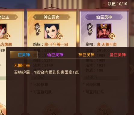 三、神仙谱伙伴的选择首选巨灵神,无懈可击的技能对于前期过图来说是无敌的存在