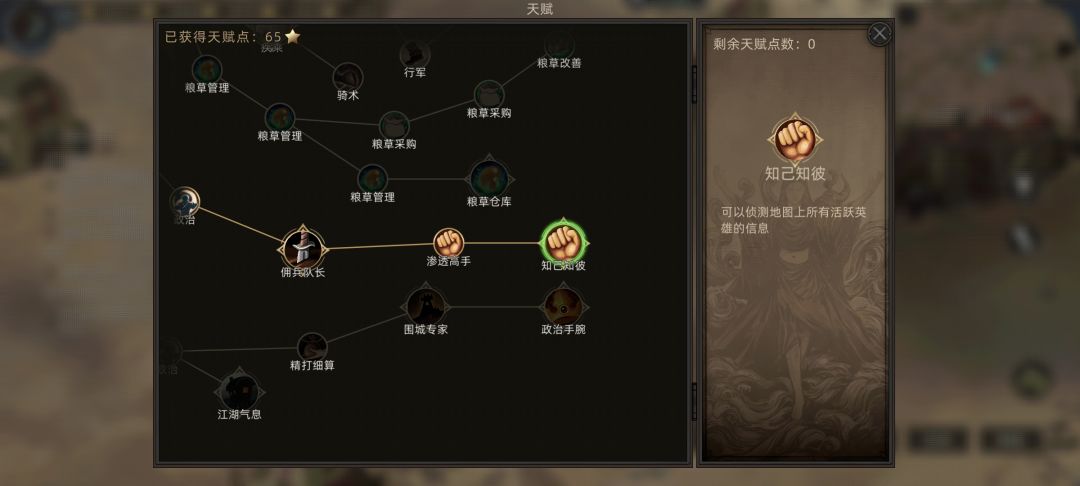 天赋界面知己知彼:解锁后,情报界面点击NPC,右上显示,当前位置