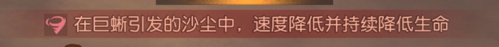 打法思路与第一阶段一致,需要注意的是二阶段狂暴期间巨蜥的活动会开始引发沙漠的异动,这时战场内会进入沙尘天气,在沙尘天气中会减少移动速度并受到持续伤害。