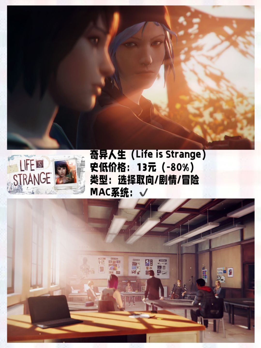 叙事冒险游戏,离开家乡5年的高中生Max Caulfield回到了小镇,然后与儿时的好友Chloe Price一起探寻同学Rachel Amber神秘失踪的真相
