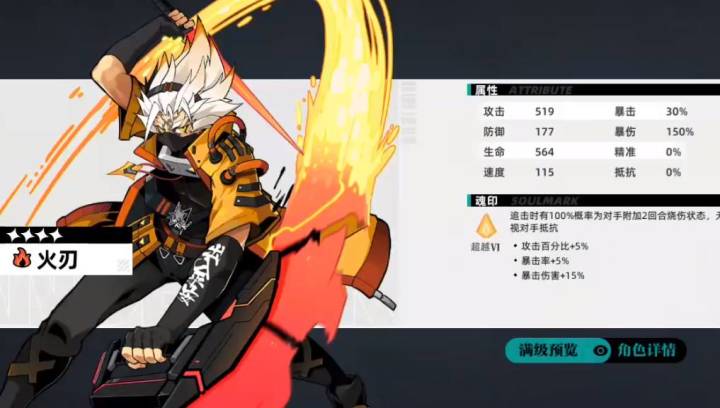 提高暴击率和攻击2个回合,天赋的2技能在使用前,对方有灼烧状态会概率提高速度。3技能单体伤害暴击后80%概率追加攻击,天赋的3技能使用后没触发暴击的话50%给自己加1回合暴击率。天赋的选择上选A,技能选1技能。刻印的套装选强者之证,加暴击,暴击后贯穿防御值,还有2个位置选加攻击属性或加速度属性。