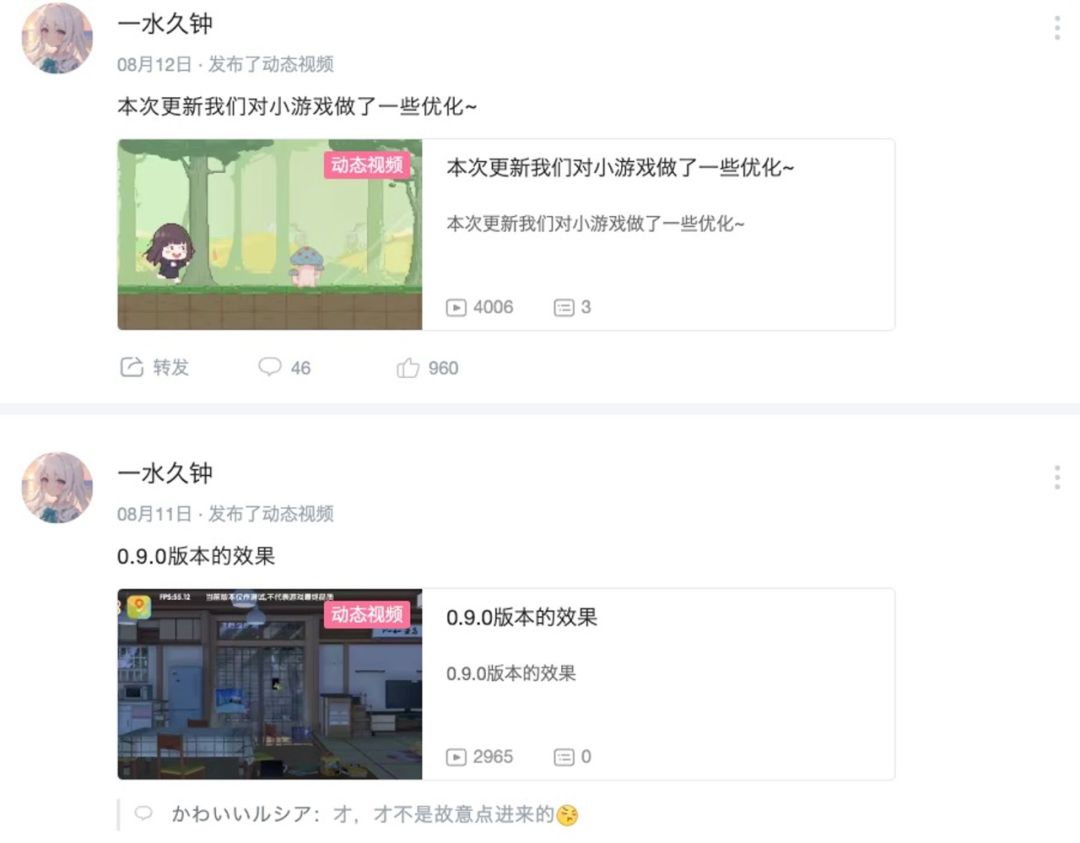 8月22日,消失已久的胡桃官方制作组重新现身,宣布会开发胡桃相关的新游戏。这时候人们才明白,一水久钟大概在前一天就知道胡桃要回来了。