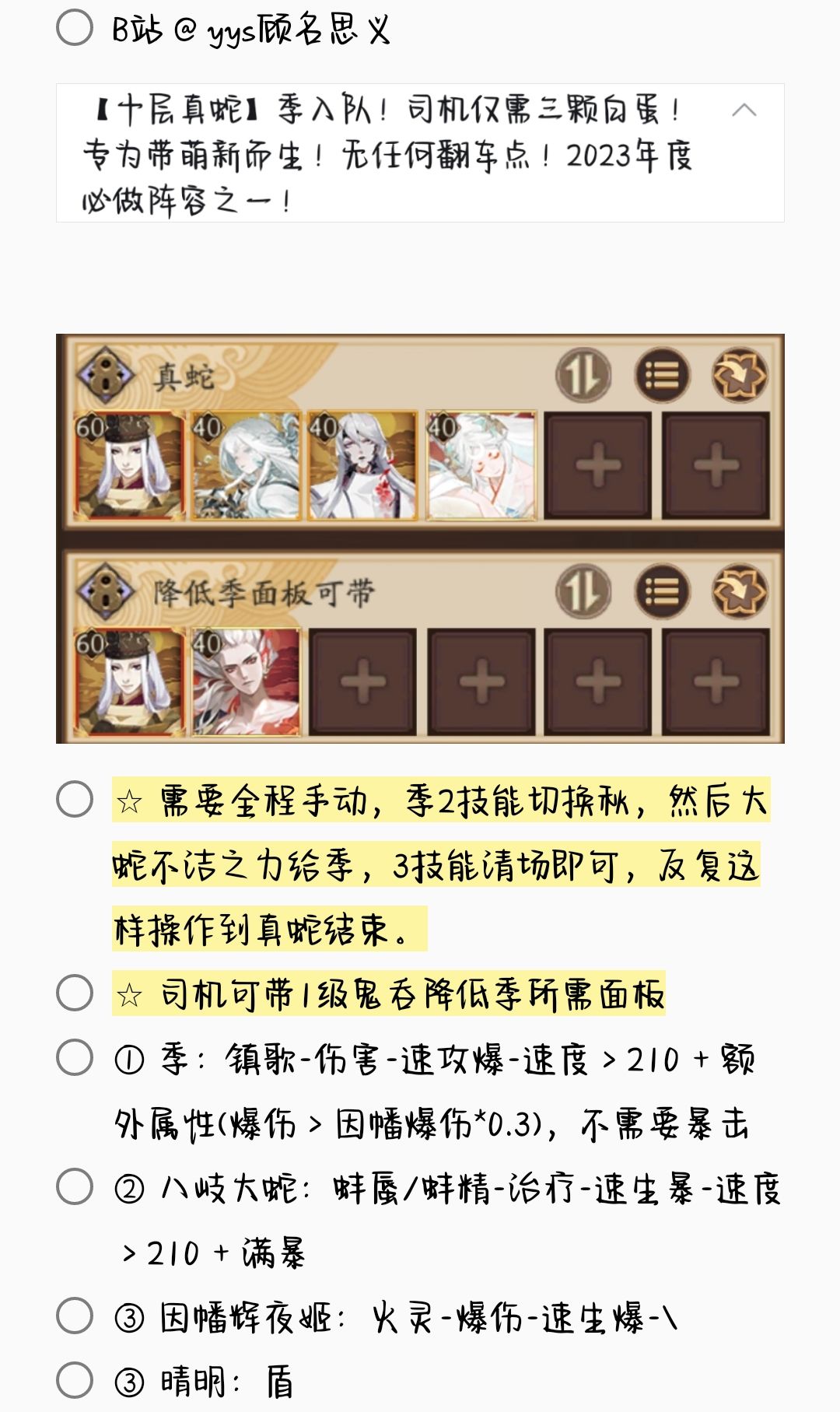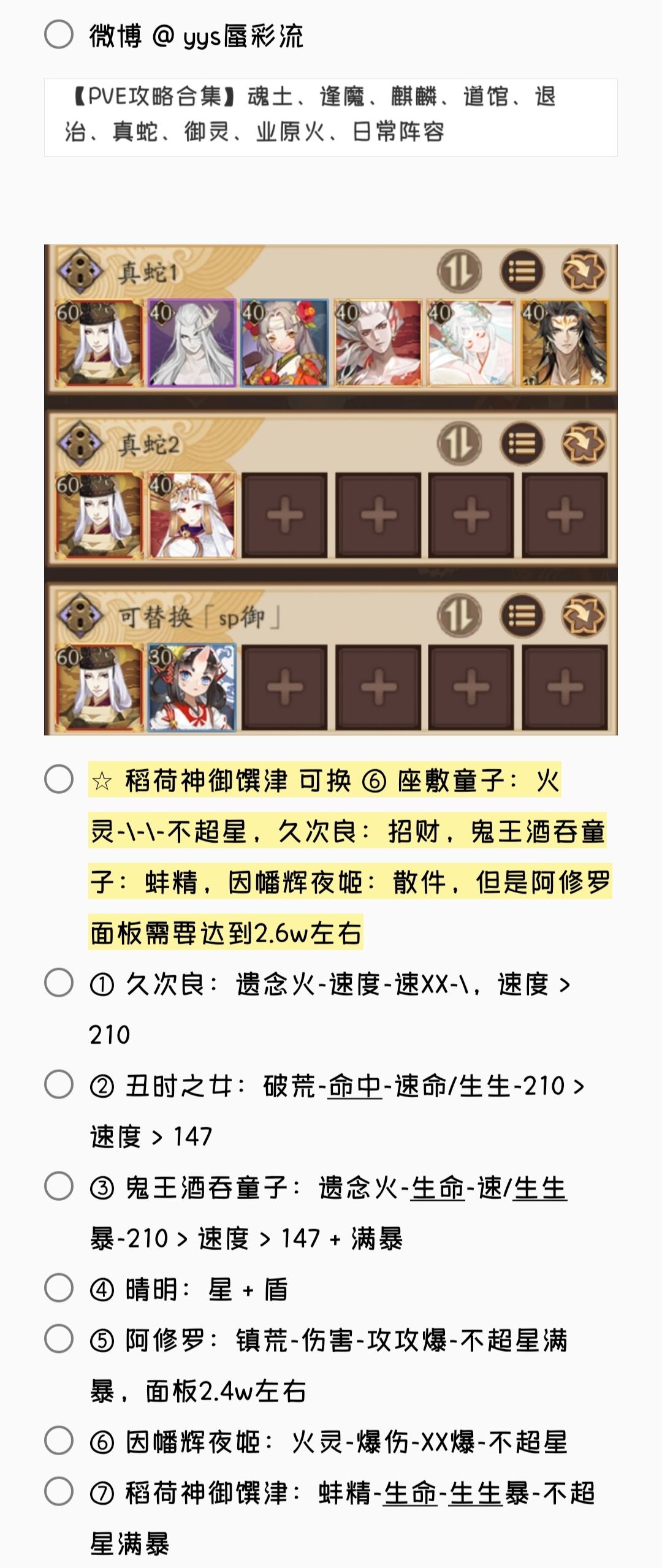 2. 若无特殊文字说明,阵容式神均需六星 + 满技能[151→至少满二技能,以此类推]