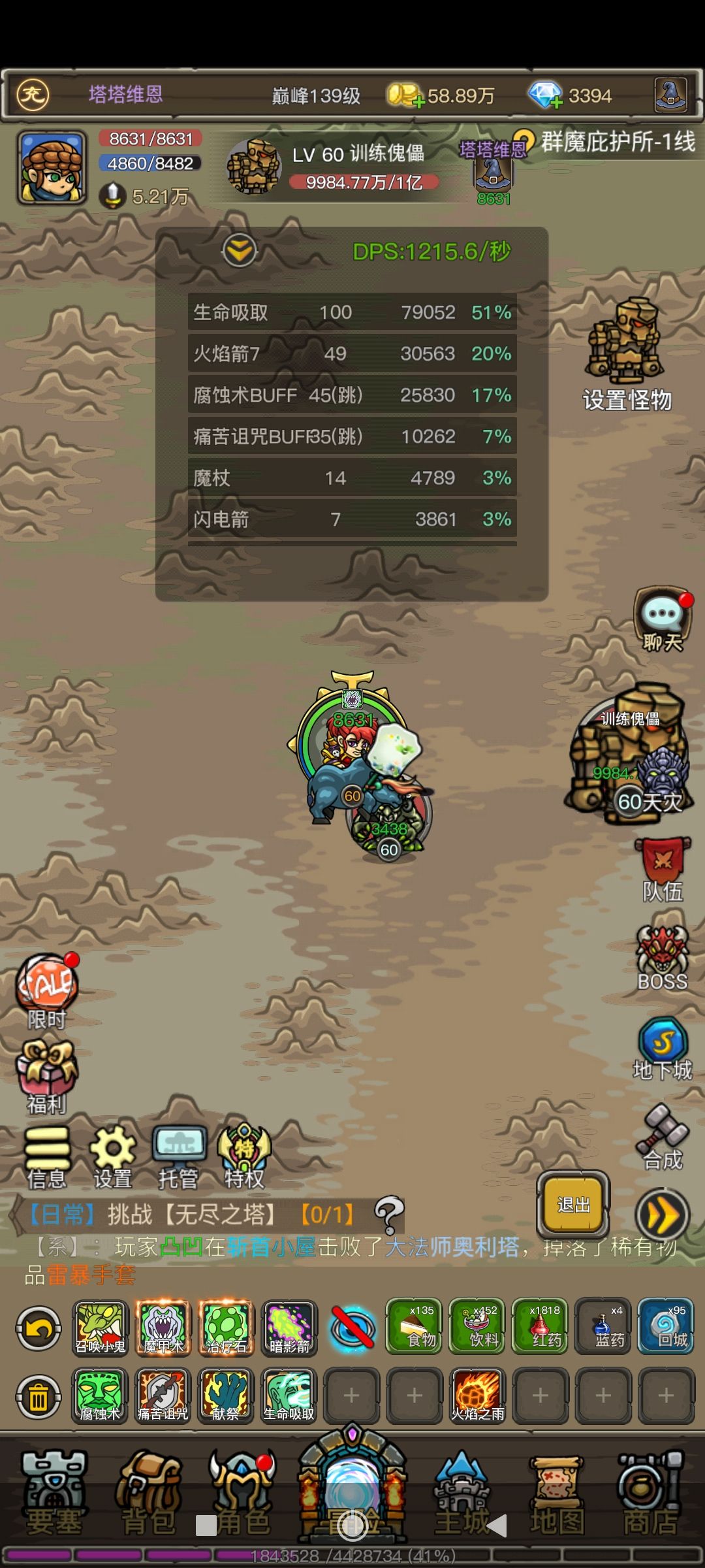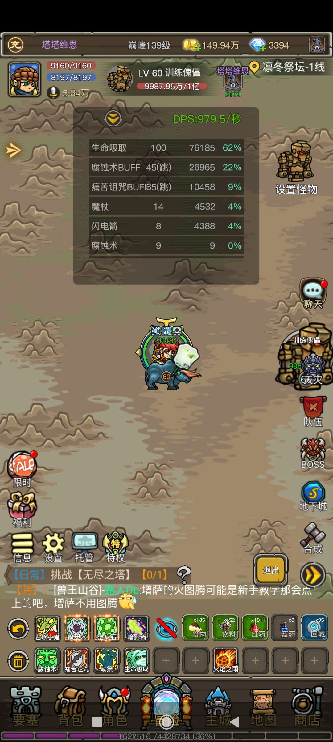下面三种天赋加点都有全套截图,木桩除了最后一个不小心放了小鬼外,统一都是100跳吸血,45跳腐蚀和35跳痛苦。