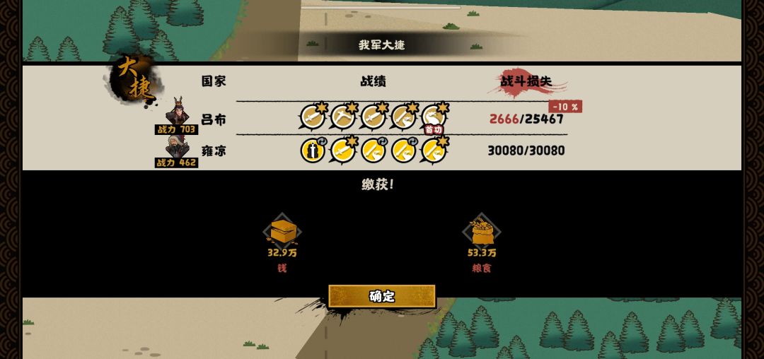 孙策方面大体比较轻松,唯一需要注意的是尽可能避免要地战斗吃到周瑜的大火球造成较高的军团减员。