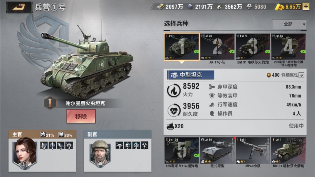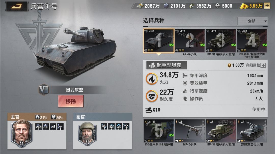 守护之锤(主)+老杰克(副),全能型搭配,打什么战斗都能打,都是坦克专属的军官,一个输出一个防御,攻防兼备非常不错,守护之锤通过首冲就可以获得;