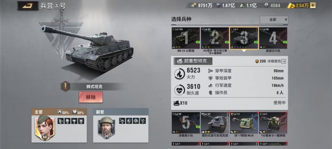 六、军官搭配 防御阵容(重坦、超重坦):守护之锤(主)+老杰克(副)、珀西(主)+老杰克(副)