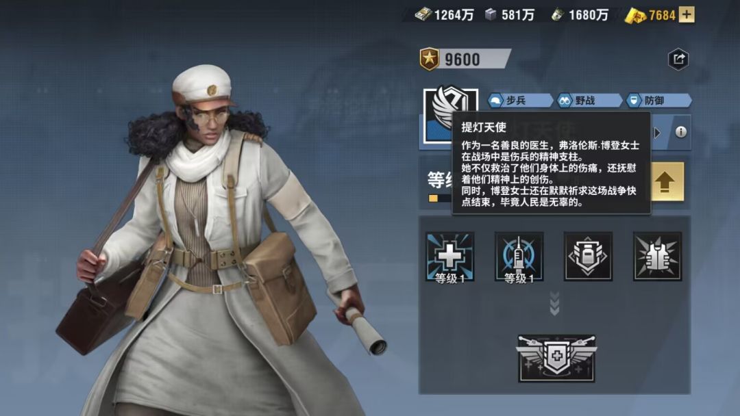 。战火这次给新手玩家介绍一下步兵专属军官提灯天使,包括提灯天使的定位,技能分析,加点推荐等等。 提灯天使背景:作为一名虔诚的信徒和一名善良的医生,弗洛伦斯·博登女士在战场中是伤兵的精神支柱。他不仅救治了他们身体上的伤痛,还抚慰着他们精神上的创伤。同时,博登女士还在默默祈求这场战争快点结束,毕竟人民是无辜的。可以看出,提灯天使是个医生,所以少不了治疗的能力!