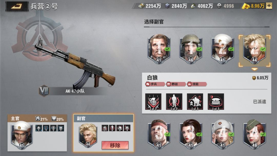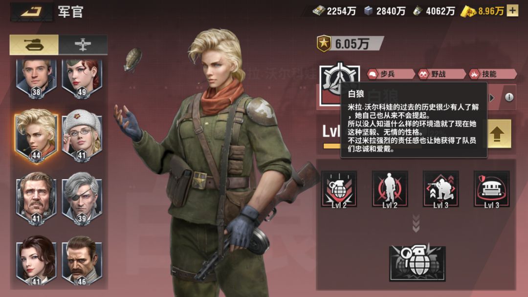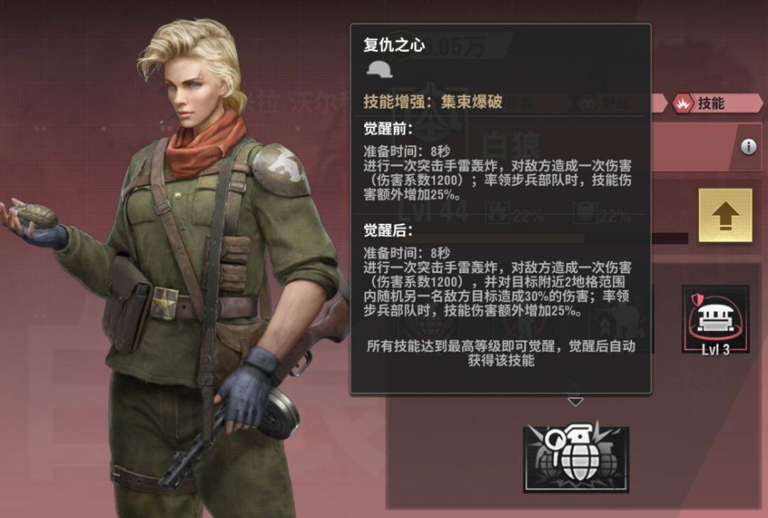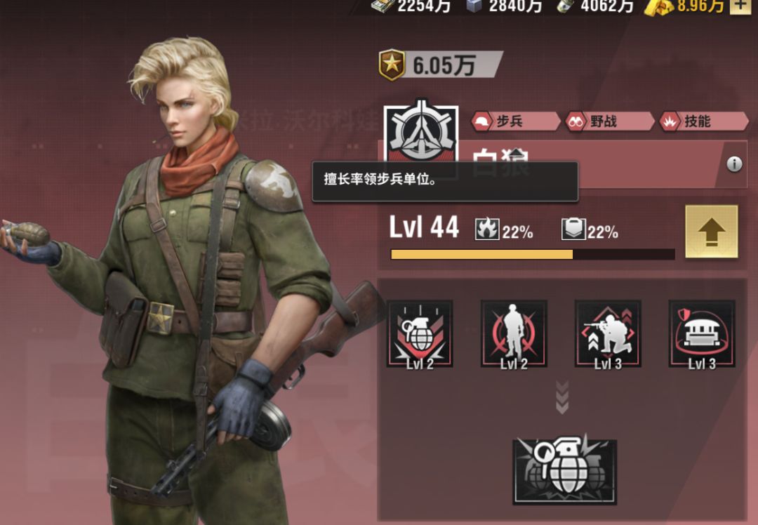 虽然白狼觉醒没其他军官那么强,不过小技能的加成对步兵来说还是比较强的攻击加的非常多,主要还是用于步兵,比较适合前期的战役关卡,目前只推荐用在步兵兵卡上。