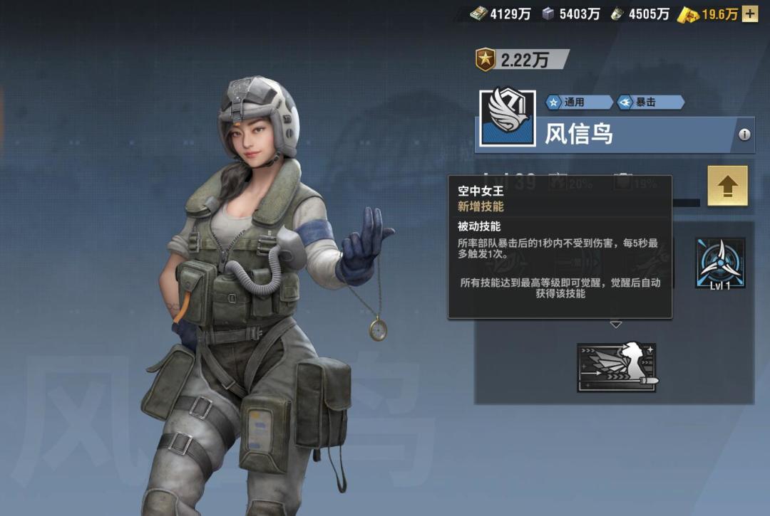 觉醒技能:空中女王增加了一个被动技能,所率部队暴击后的一秒内不受到伤害,每五秒最多触发一次少有的无敌技能,一秒时间内不受到伤害,有点类似于“特工”玛丽的致盲技能,不过她只要触发了暴击就能够无敌,不需要等待8秒,虽然有五秒内置冷却的限制,不过这个技能依然强势