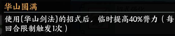 这5件套虽然没隔壁因果刀多个1.4指数增长那么夸张,但已经是剑系擂台的翘楚了,可以助你把膂力轻松叠到四位数的。当然,叠的过程要注意顺序,临时的先放,永久的后放,虚空膂力就这么无中生有出来。重点是华山的每回合40%要好好利用一下,怎么利用只要不是云玩家去木人多打几把就知道了,不多说了。