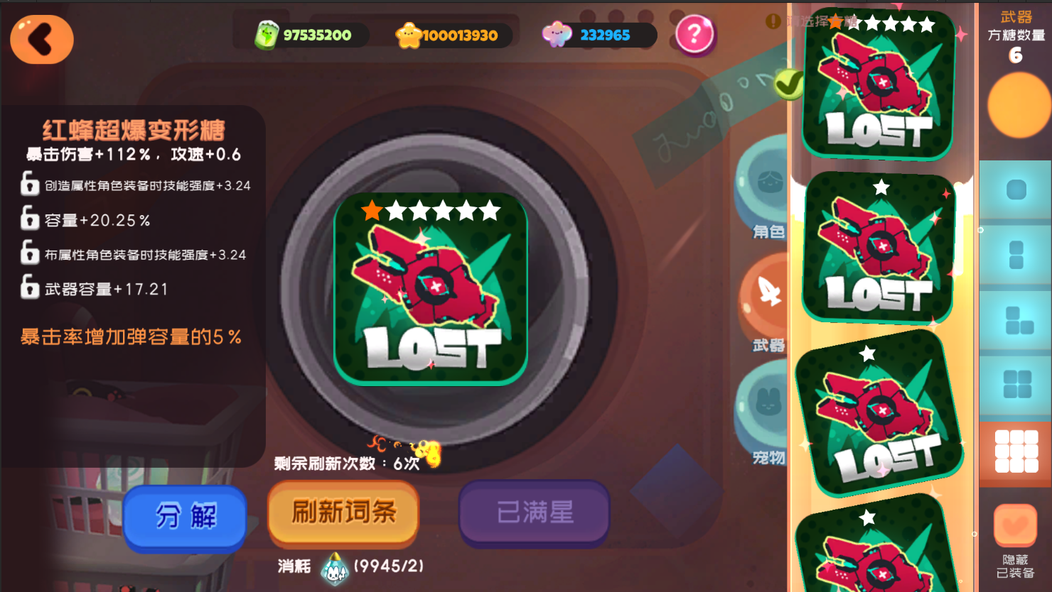 武器的超阶副属性每条能随机出增加容量,面板(不确定),以及某种类型角色穿戴后技能强度增加