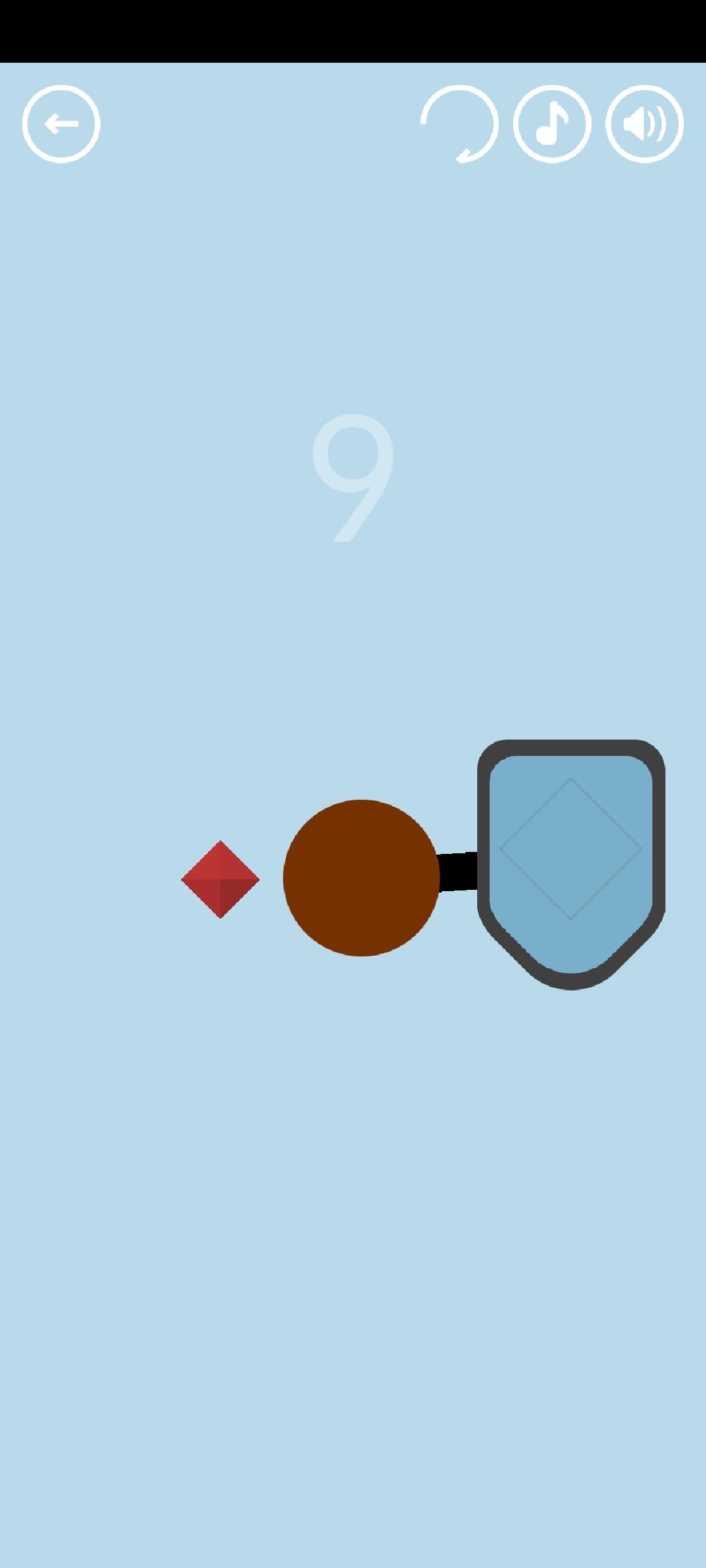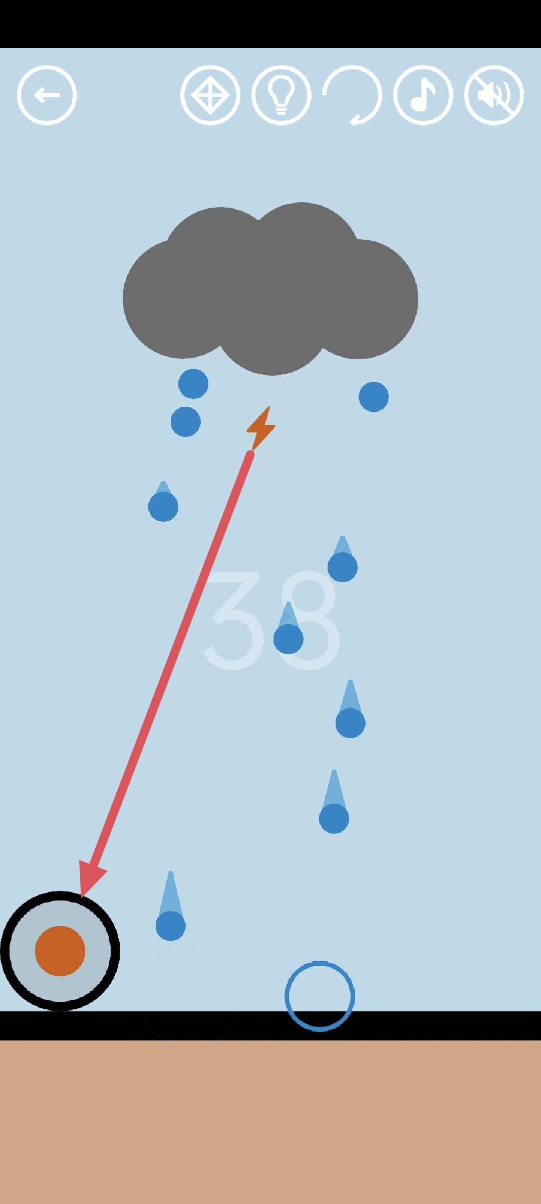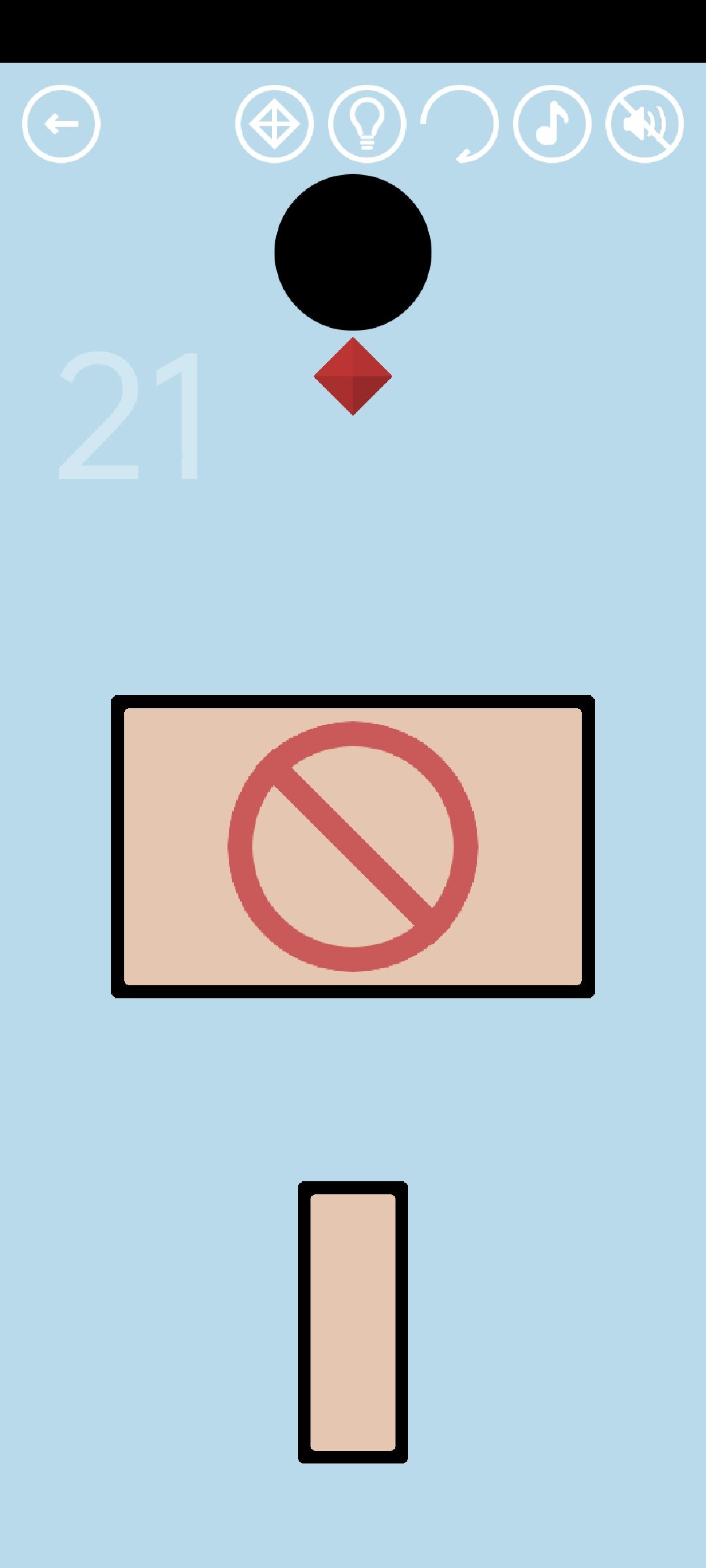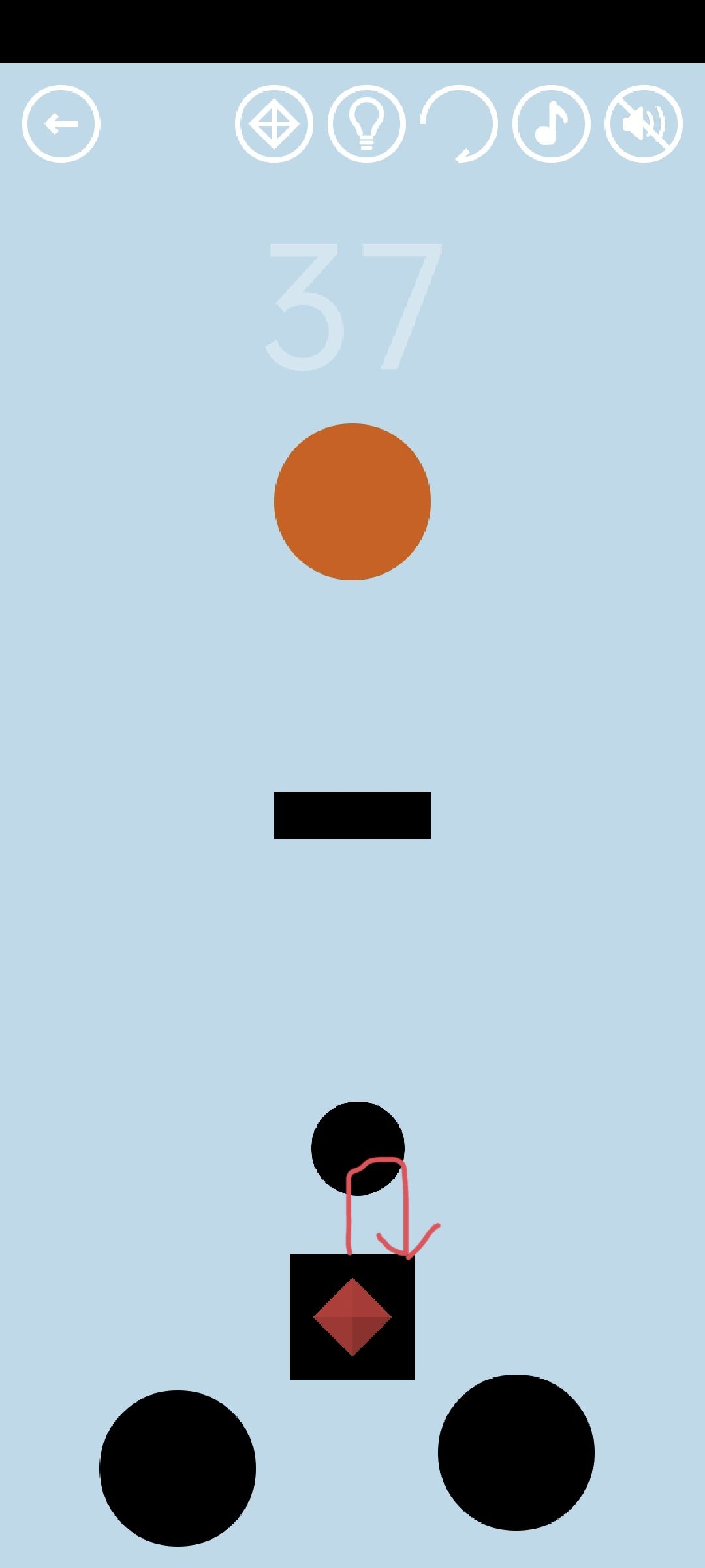 第24关:把返回键拖下来当左方向键,控制小球到达终点,得到橙色通关按钮。