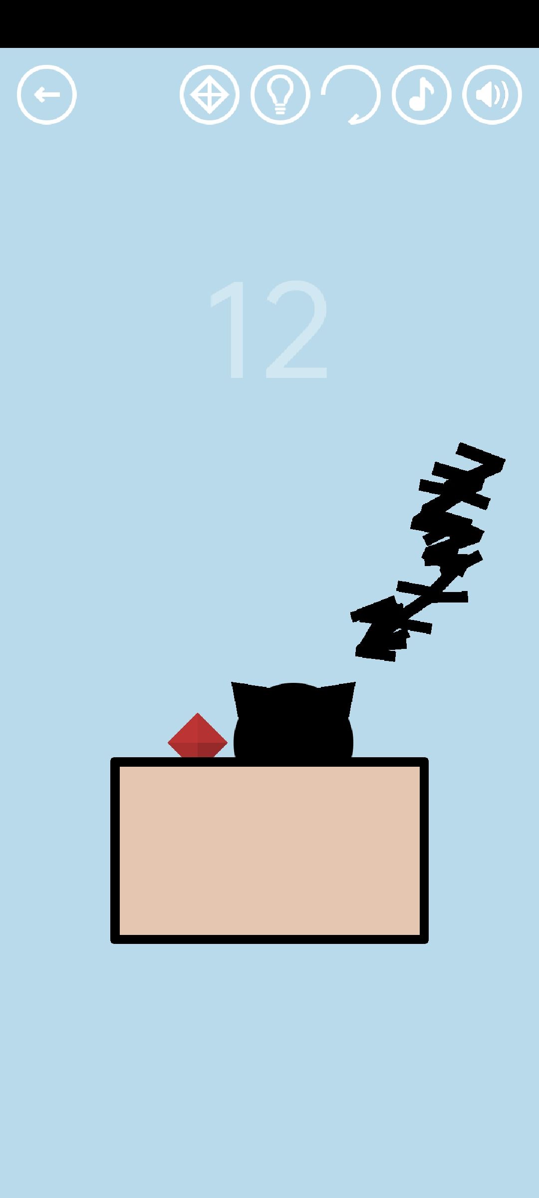 第12关:点击12个符号Z唤醒小猫,点击探出来的猫头通关。向右滑动猫头得到红宝石。