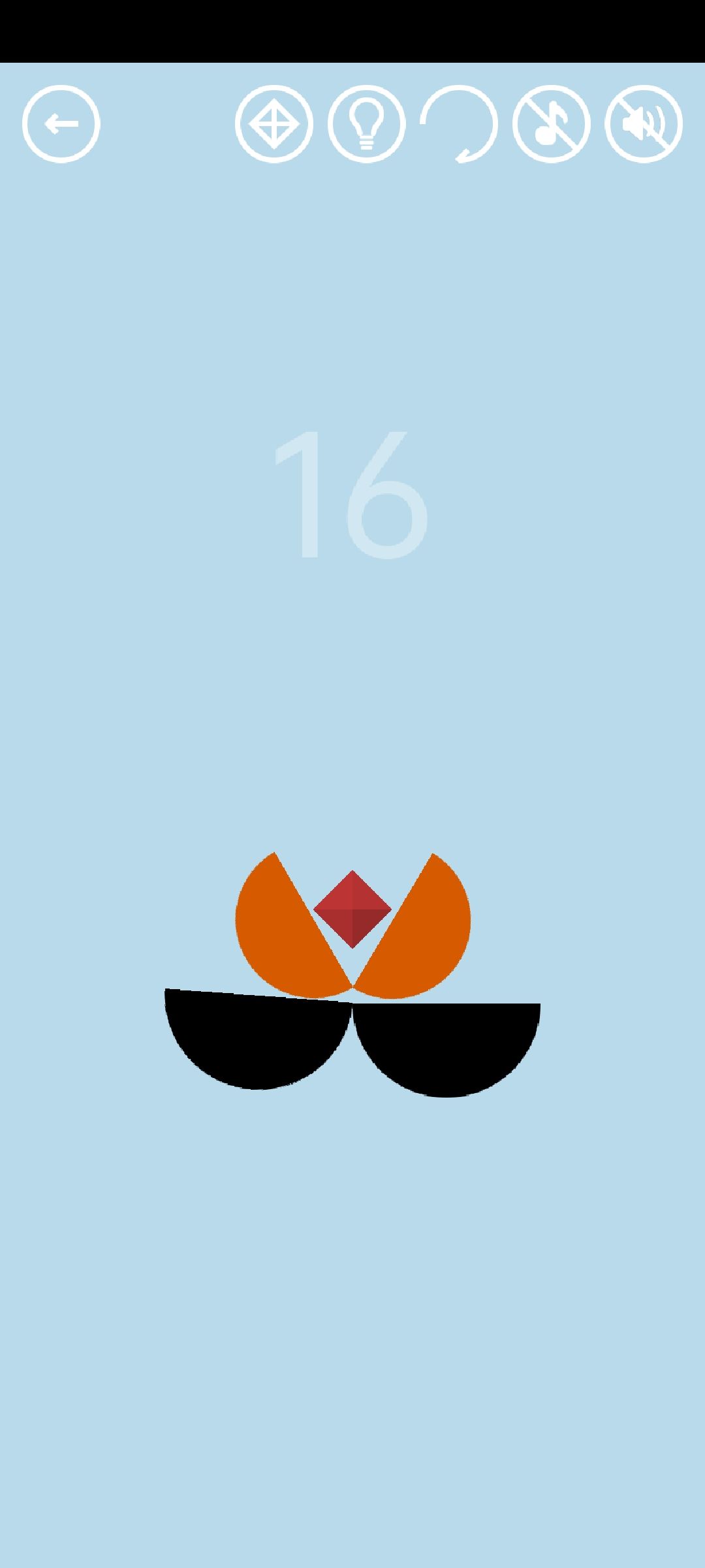 第16关:对着黑色圆形连切16刀,黑圆会裂开,得到橙色通关按钮。对着橙色按钮再切16刀得到红宝石。