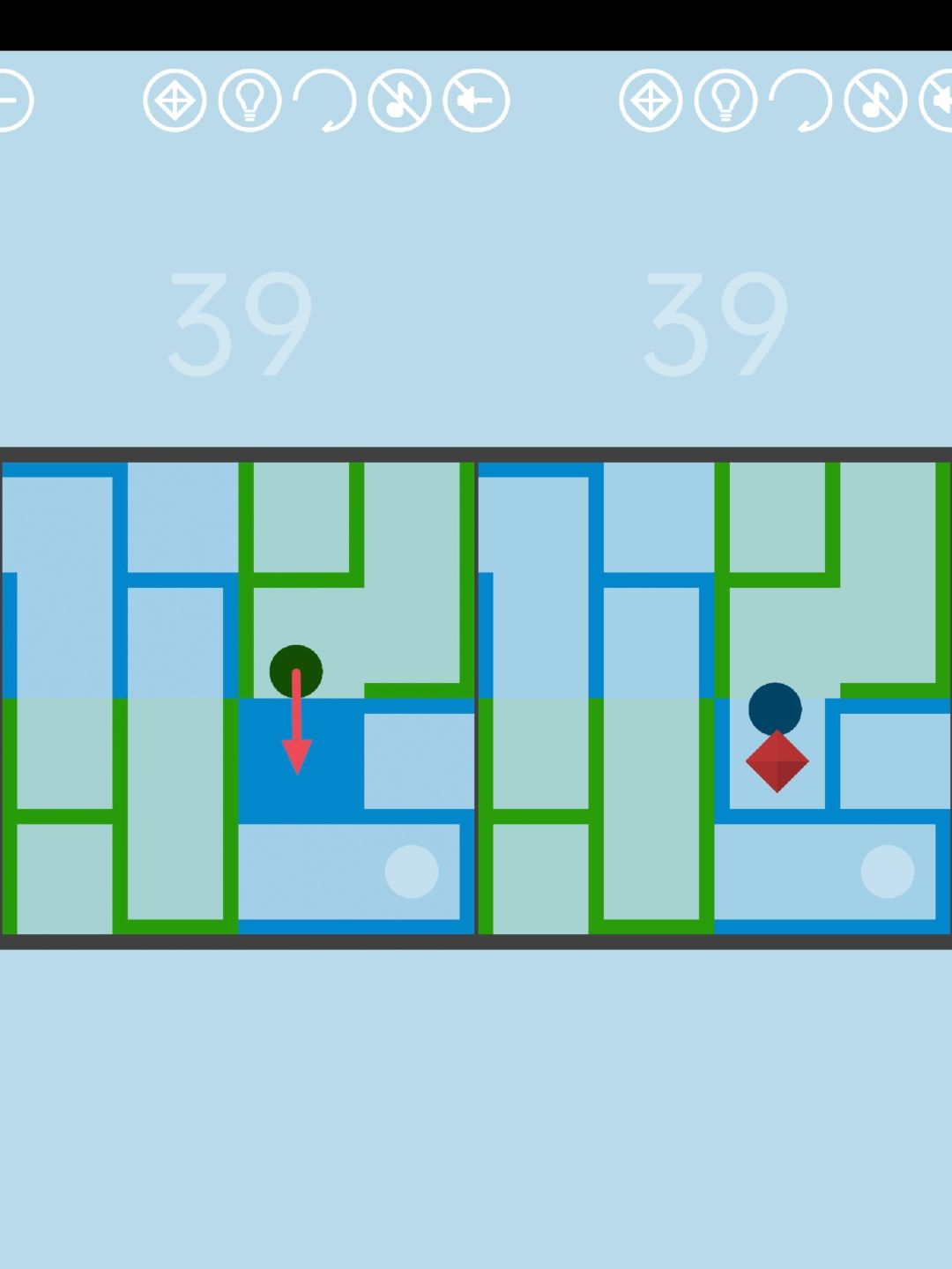 这关的红宝石藏在随机位置,圆接触它时会显示出宝石的轮廓。先让圆在全屏范围内移动,把宝石的位置找出来,然后移动方块使圆与宝石持续接触,几秒钟后红宝石即可现形。