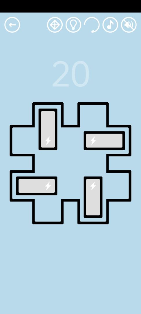 第20关:将4块电池移动到正确位置,得到橙色通关按钮。一种移动方法如视频所示: