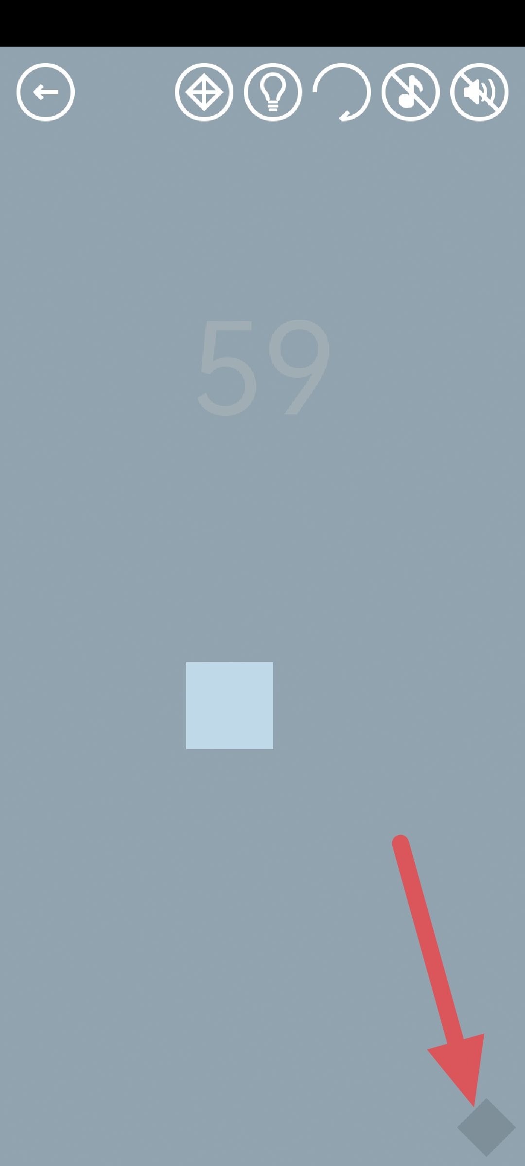 第59关:快速从四周向中央滑动,将白色区域压缩成一个小正方形,点击即可通关。在白色区域被压缩到很小时,宝石的轮廓会在屏幕一角出现,点击获得红宝石。