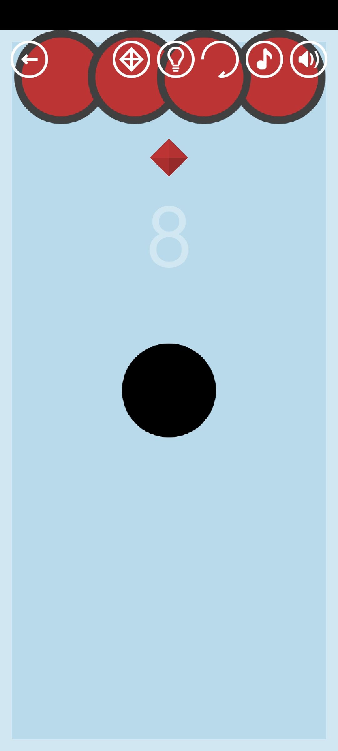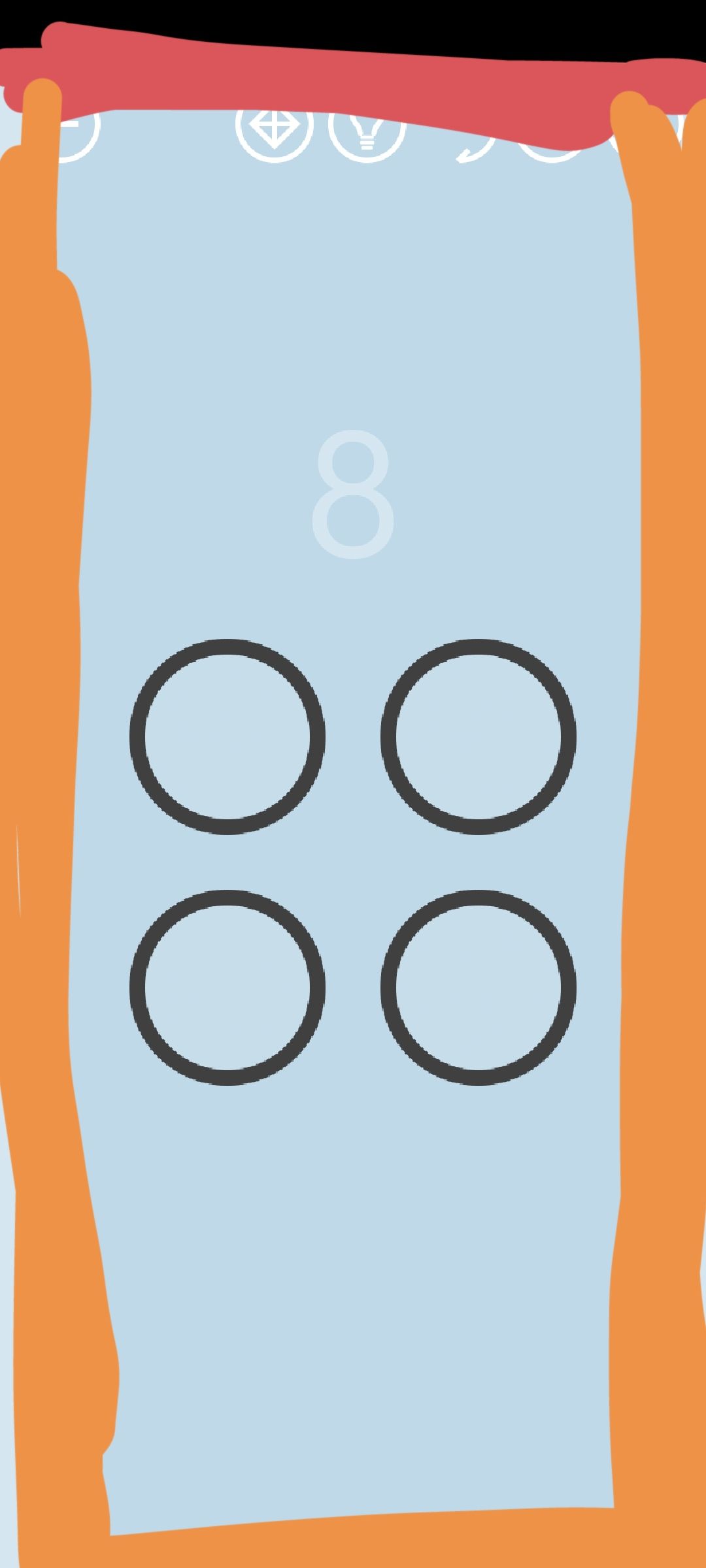 第8关:圆圈接触边框时会变色,接触顶边变红,接触另外三边变橙。让四个圆圈都变色得到通关按钮,让四个圆圈都变红得到红宝石。