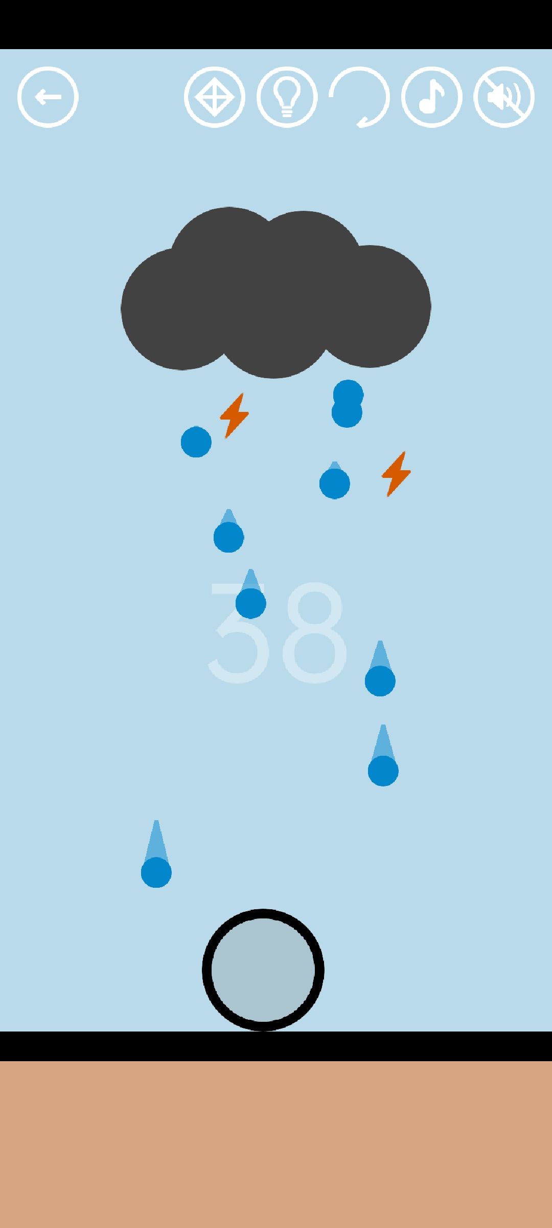 第二步,把圆圈摆到一个雨淋不到的地方,把闪电往圆圈里拖。注意避免圆圈被雨淋到,雨淋会减少闪电收集的进度。如果雨变小了,就再放几滴雨到云里面去,让它重新变成黑云。