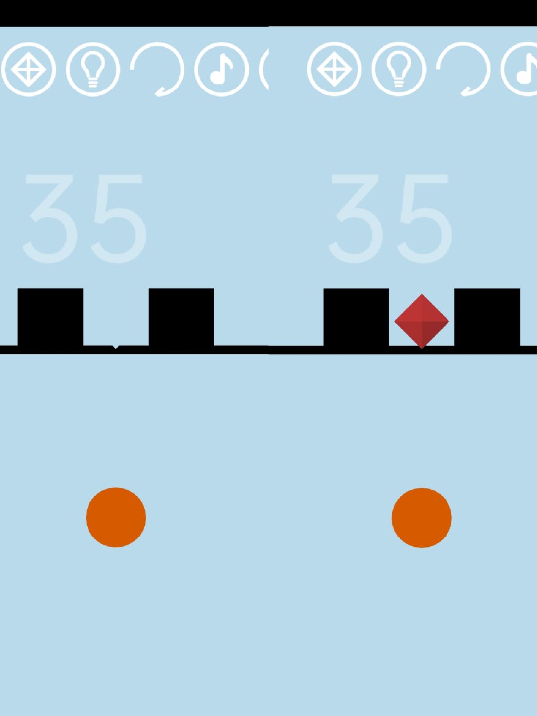红宝石藏在黑长条里面,我们让黑球撞到黑长条,就会显示出宝石的轮廓,点击获得红宝石。(P.S.长按屏幕时,红宝石也会在黑长条里左右移动。所以如果看到轮廓之后没有立刻点击,它就跑了。这时可以让黑球变透明,从左到右把黑长条点一遍,一定能找到宝石。)