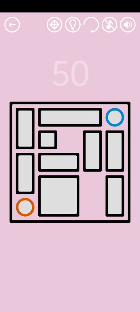 第50关:这关和华容道有点像,将两个圆圈交换位置即可通关。红宝石藏在大正方形背后的右上那一格。一种收集红宝石+通关的方法如视频所示: