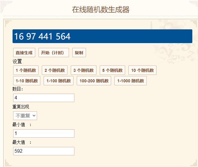 接着抽取钻石*666奖励~在1-592中生成10个随机数: