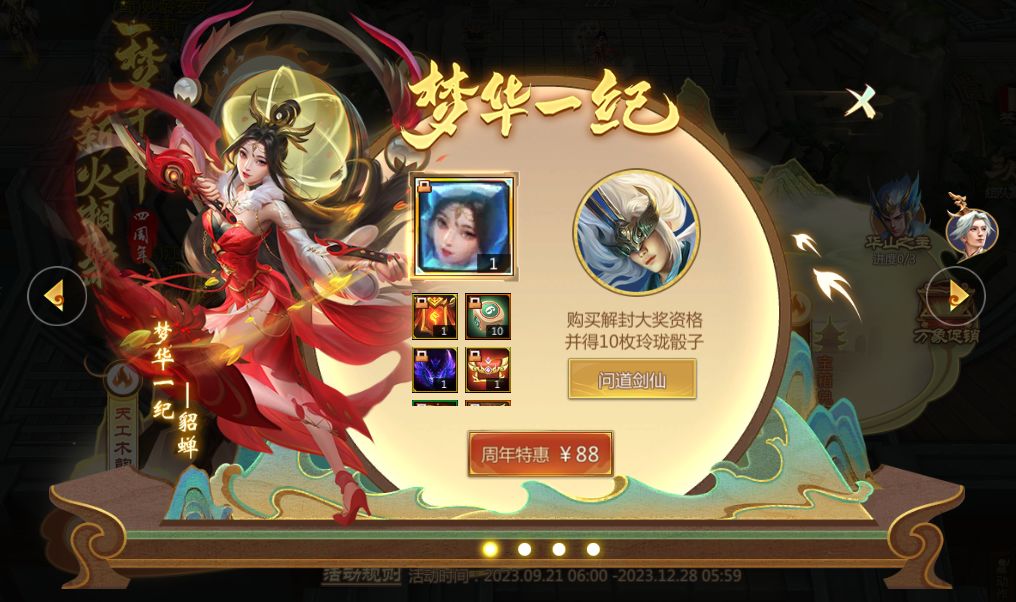 其中梦华一纪礼包可以解锁剑仙大奖额外奖励资格,大家可以在活动获得于吉的两款剑仙换装。