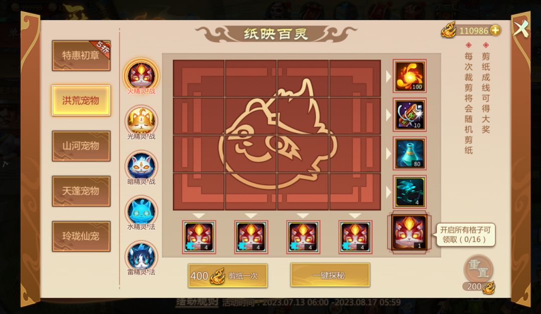 在纸映百灵中,保留大家在周年庆活动期间探秘进度,已解锁的行列及领取过的终极大奖不会重置,仙术师们可接上次进度继续探寻珍贵秘宝。