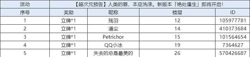 【超次元预告】人类的罪,本应洗涤。新版本「绝处逢生」即将开启!(已开奖)