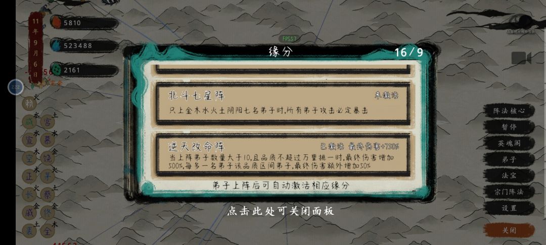 这套阵容的核心就是吃逆天改命阵的750%和五行阵的300%终伤加成(当然如果你有满级炫彩吃一个五行阵也勉强够玩了)不了解这两个阵法的萌新可以看一下