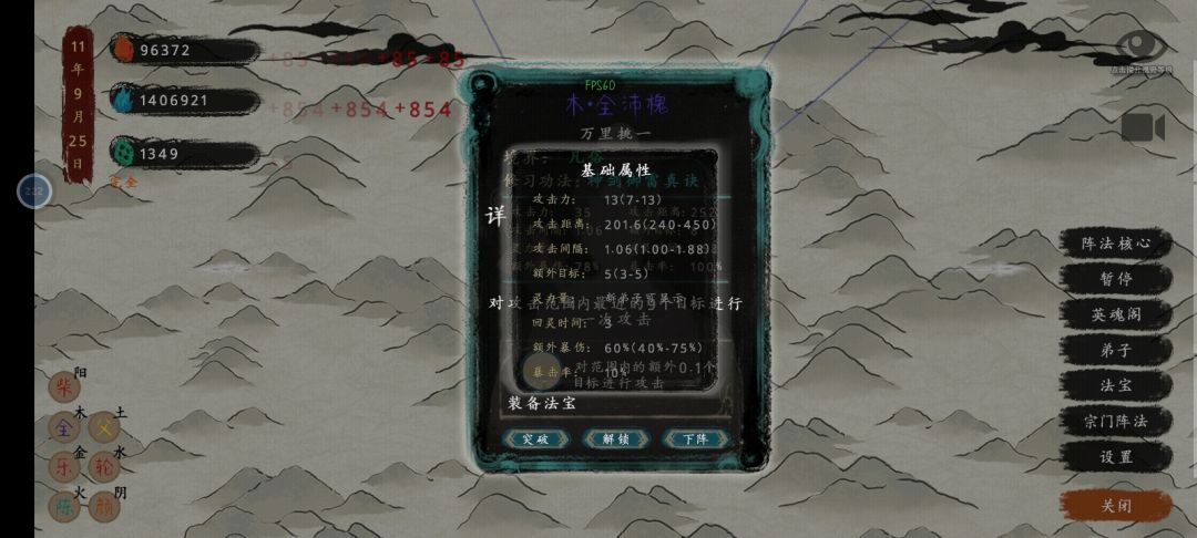 法宝优先上加攻击数量的,宗门阵法里面全上加法宝掉落几率的