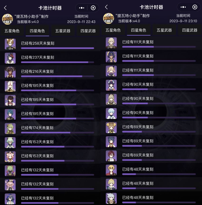 最久未复刻的四星角色,4.1卡池会陪跑哪几个四星?