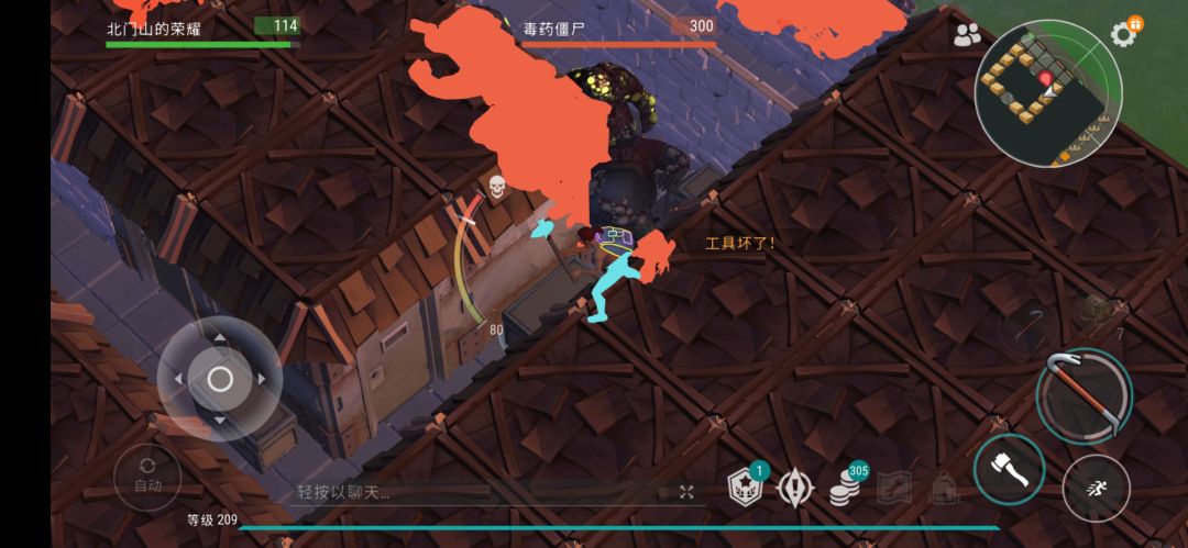 最后看运气,如果他家树长在房子里,那可以直接卡自动进铁皮,如果不是那要留一个胖子来卡进去,我的运气不佳,只能多砸一个垃圾箱子