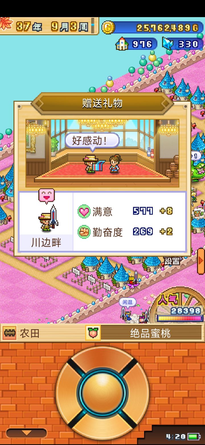而且这种方法还能加人气,一个蜜桃加8点人气,前期大大减少时间成本,而且人气关系到奖章奖励,1万人气往后每加一百人气就有一个奖章