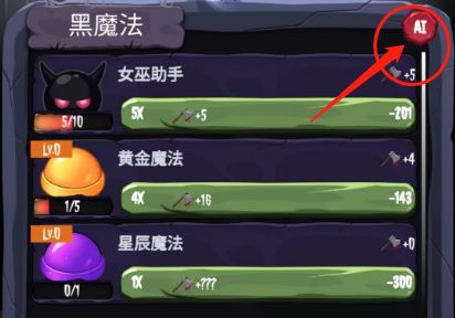 黑魔法有对应的价格和提升的攻击力,积攒足够的金币即可购买。