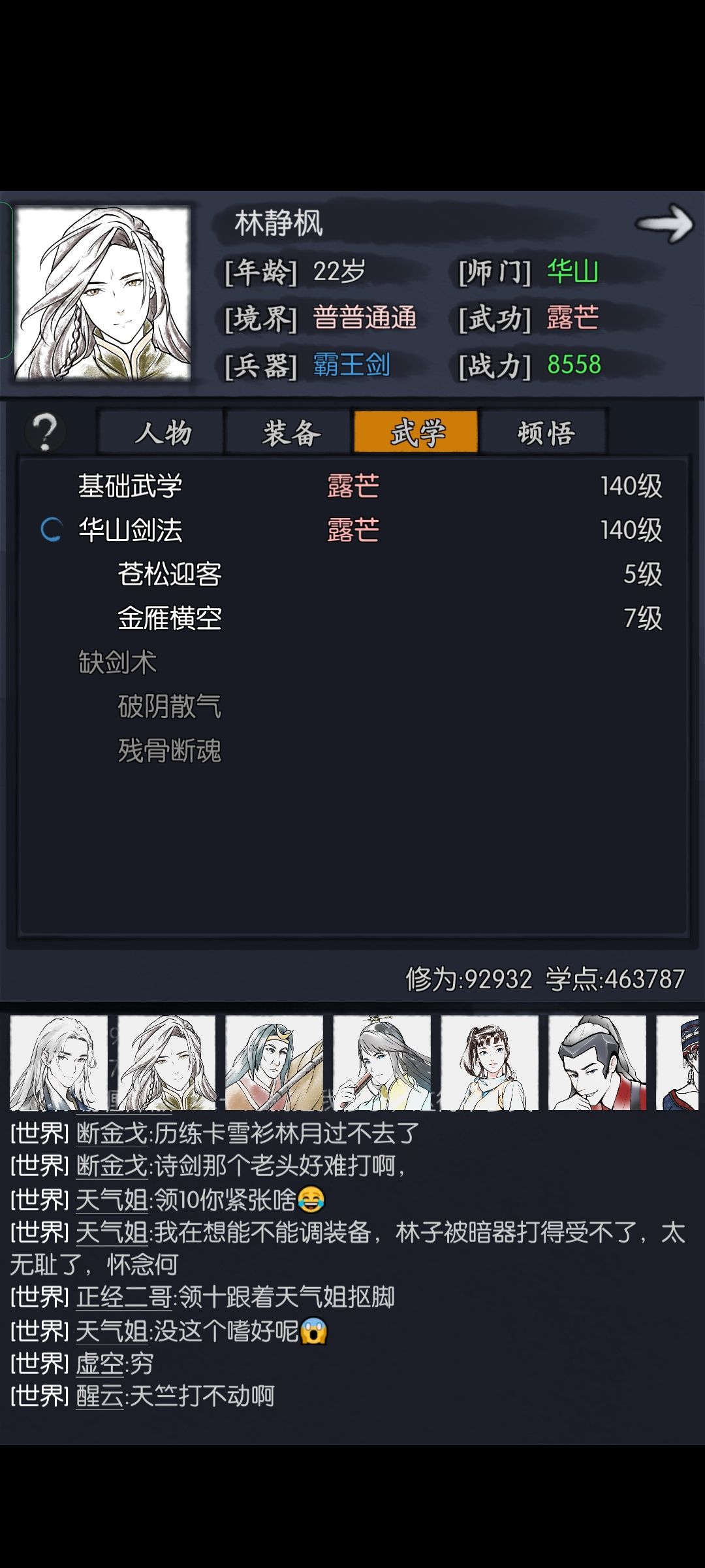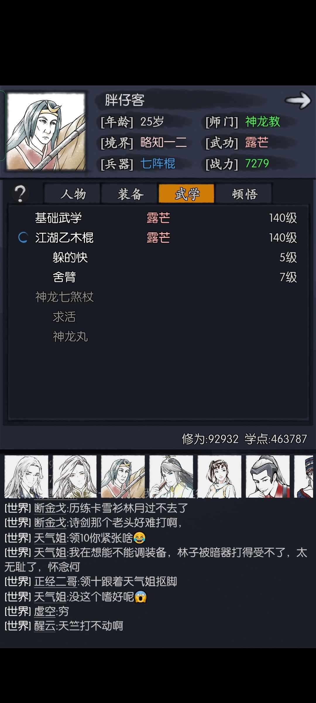 6块以上的氪了月卡,栈道30,68金彩石两个十连,应该和零氪资源也差不大多。发个贴给自己记录一下,可能对萌新有点帮助吧。一般最好别点小林1-1,我慈悲刀输出够了就无所谓了。哦我是武林世家,还有戒指用混元戒加武伤最好,我是没有