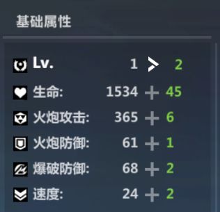 升级能给该战舰提供生命、火炮攻击、火炮防御、爆破防御以及速度的加成。