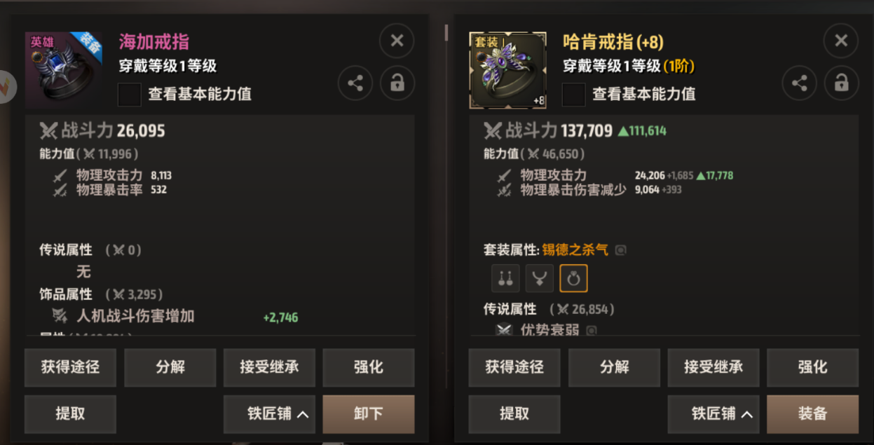 只根据目前的战斗力来选择数值较高的装备。
