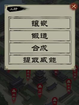 工坊分为【镶嵌】【锻造】【合成】【强化】【威能】。