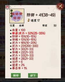 神纹装备有的是附加一定的属性,比如雄姿马附加额外的武力、防御等。