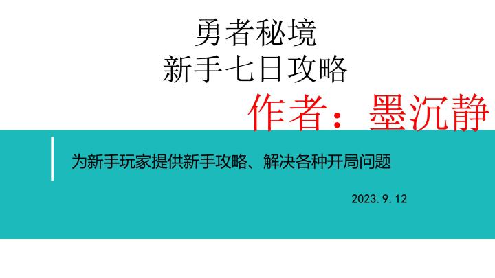 勇者秘境新手七日挑战攻略——墨沉静