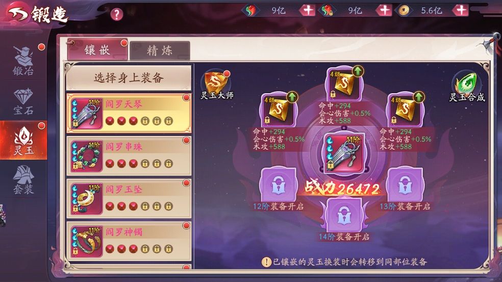 《刀剑情缘》装备强化 灵玉镶嵌