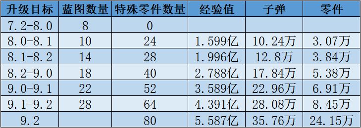大家目前需要提前知道一些必要的知识点大家由此可见蓝图不是一个通用型道具,也是与兵卡一样分阵营的,也有分赤熊、蓝鹰、苍狼三大阵营的蓝图,也就是之后平民尽量只玩一张兵卡到上限,因为越往后的星级要的蓝图越多,正常我们零氪微氪如果不只玩一个阵营一张卡的话,基本上是很难达到现代版本,并且很难把星级提高的以下参考国际服数据7.2星提升到8星需要8张蓝图8星到8.1星需要10张蓝图8.1星到8.2星需要14张蓝图8.2星到9星需要18张蓝图9星到9.1星需要22张蓝图9.1星到9.2星需要28张蓝图目前9.2星为目前全游戏版本的最高星,7.2星到9.2星总共需要100张蓝图,并且升星不只是只要蓝图就可以升,还需要特殊材料、经验值、子弹、和零件,只是这篇主要说蓝图,所以先不提其他的道具。目前获取蓝图的方式主要为两种