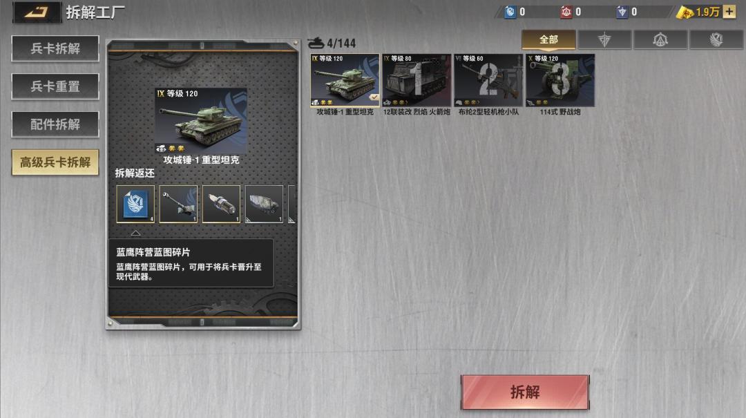 拆解7.0以上的兵卡都能获得蓝图,对,你没看错,不只是三星卡能够分解了,7星卡开始也都能够分解了,不同星级获得的蓝图量也不同