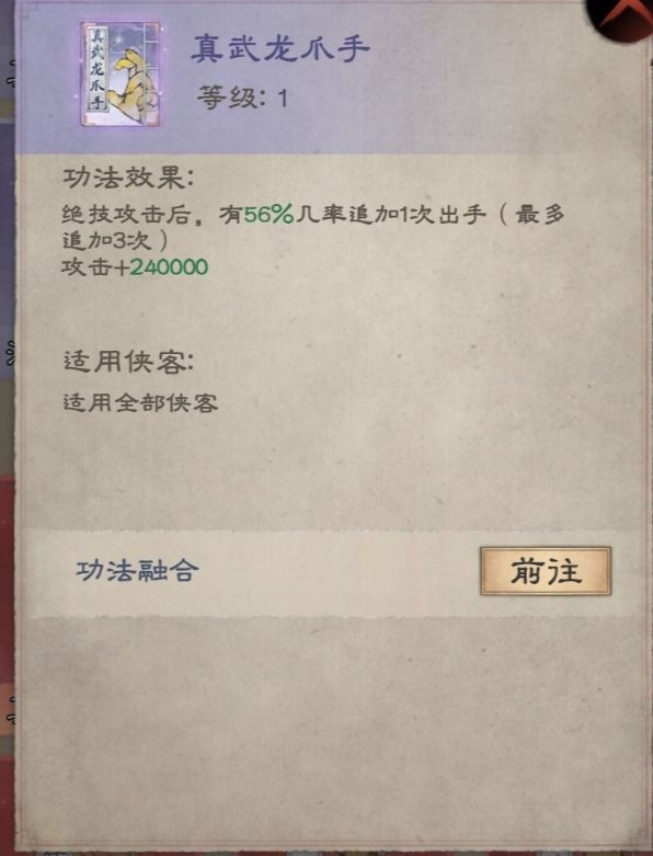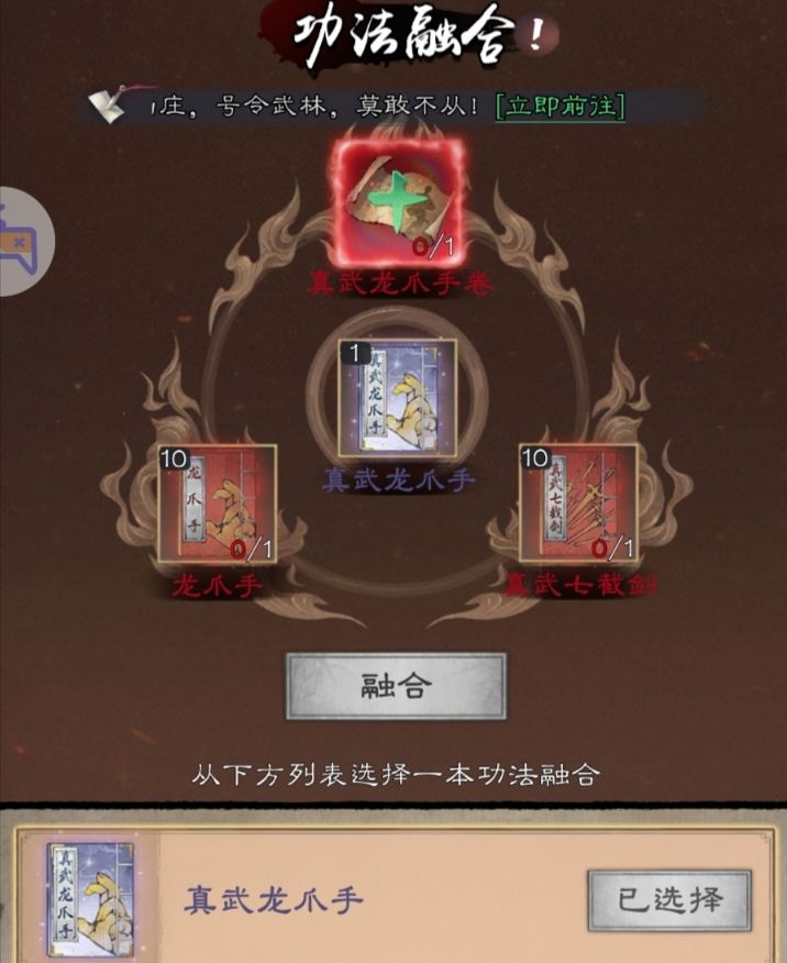 由10级真武七截剑,10级龙爪手,真武龙爪手残卷合成!